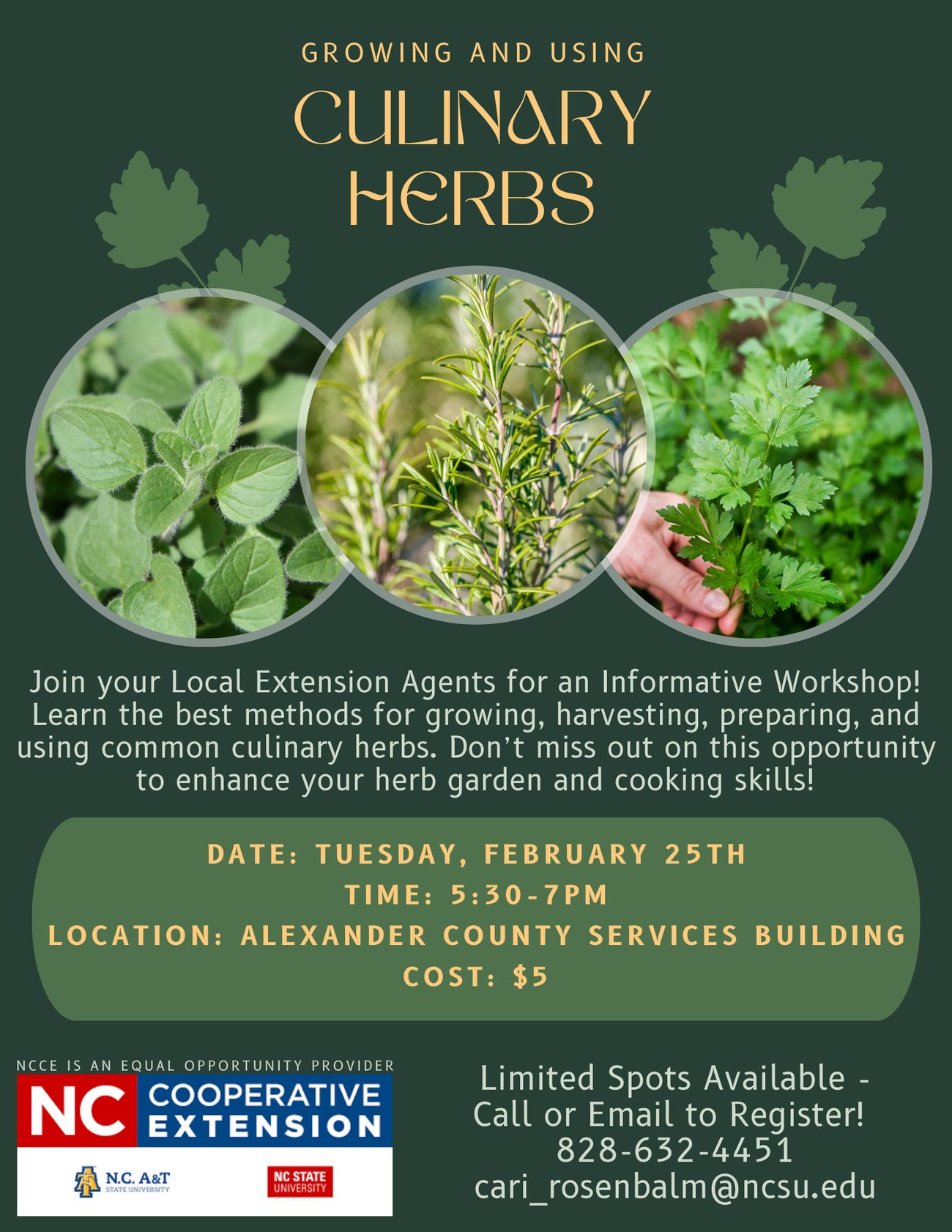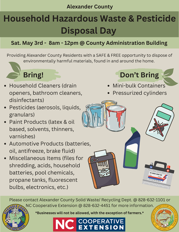 To register and for more info, please call the Alexander office at 828-632-4451 or contact Cari Rosenbalm by email at cari_rosenbalm@ncsu.edu.