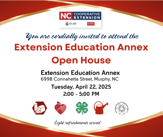 N.C. Cooperative Extension - Cherokee County Center, 40 Peachtree St, Murphy, NC 28906, United States Click here to unsubscribe