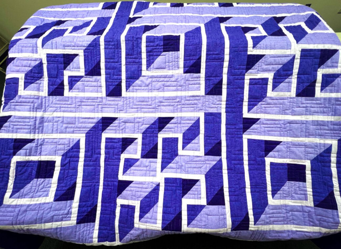 Winning “Best in Show” out of all entries at the Cultural Arts Contest, the “Labyrinth Walk” quilt is a stunning piece of artwork. The quilt showcases varied shades of purple hues in geometric designs. The quilt was machine pieced and machine quilted. Lovingood says the quilt was made as a gift to her daughter.