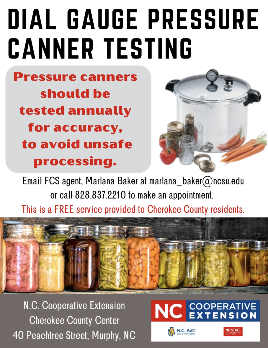For your safety and to ensure proper food preservation, dial gauge pressure canners should be checked annually for accuracy. This testing service is free and takes only a few minutes. You only need to bring the canner lid for testing. Even if the gauge has been removed from the lid, we can still test its accuracy. We recommend calling ahead to schedule an appointment to ensure an someone is available to assist you.