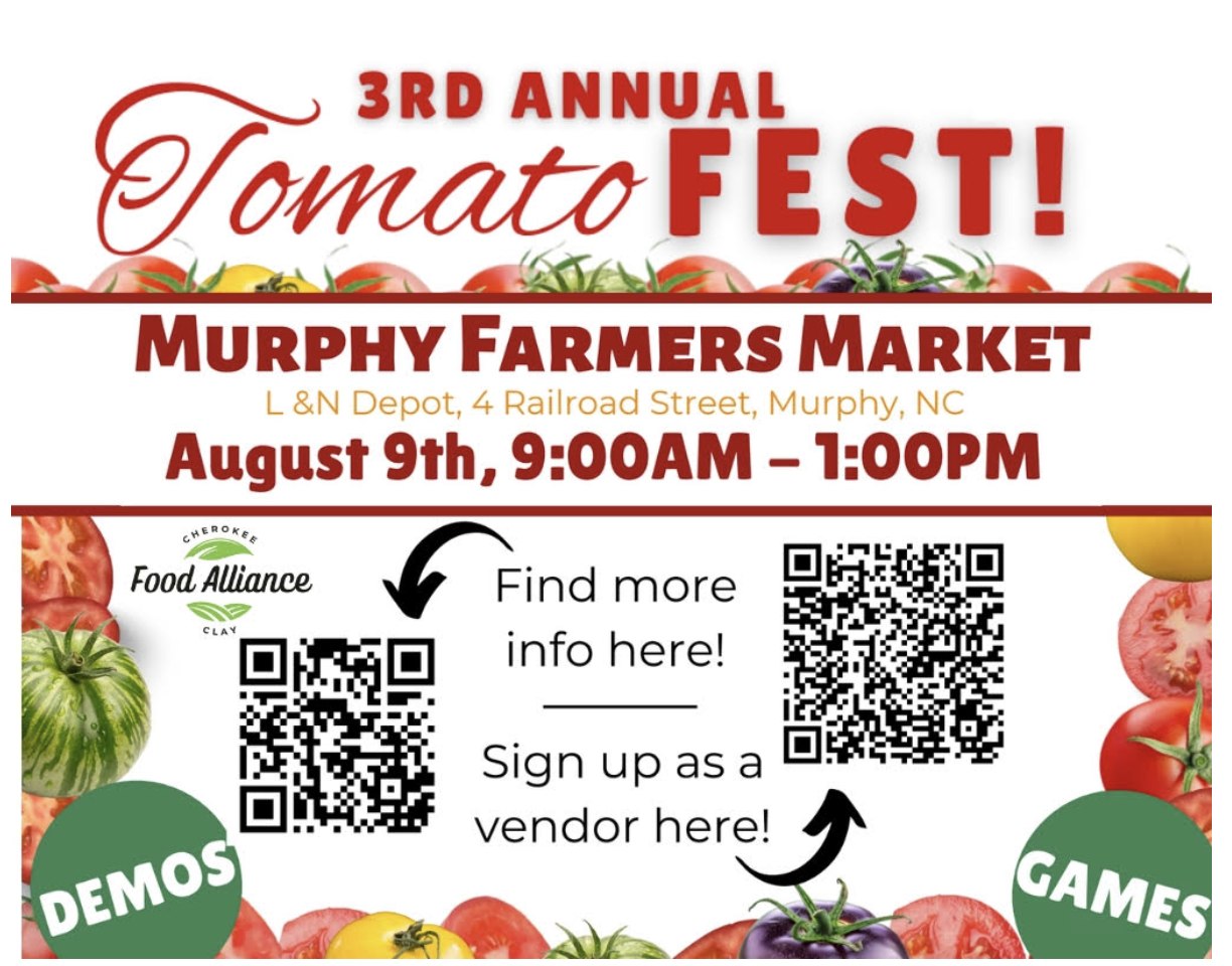 Here's a wonderful opportunity to support our local community and ensure no one goes hungry: visit the Donation Station at the Murphy Farmers Market! On the second Saturday of every month, you can make a real difference. The Donation Station gratefully accepts food items you purchase directly from our local farmers at the market. See more information in the event section of this news letter.