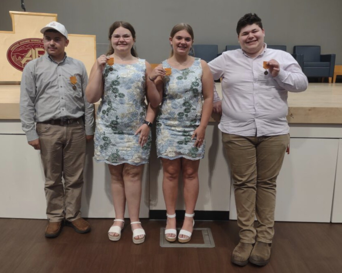 Congratulations Carlie James and Kaelyn Hedden for their gold winning team presentation in the careers and entrepreneurship category. Congratulations Eli Setless for his gold in the digital reality category. And congratulations to Cole Kimbrell for winning gold in the poultry production category.