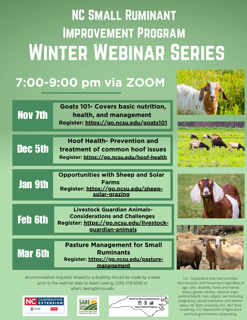 Small ruminant farmers in McDowell County, NC, affected by Hurricane Helene can now apply for a special Cover Crop Restoration Program that provides free cover crop seed, fertilizer, and lime to help restore and improve damaged farmland. This program supports soil health, forage quality, and long-term farm productivity. To qualify, producers must apply by October 10, 2025. For details or help applying, contact the McDowell County Cooperative Extension at (828) 652-8104.