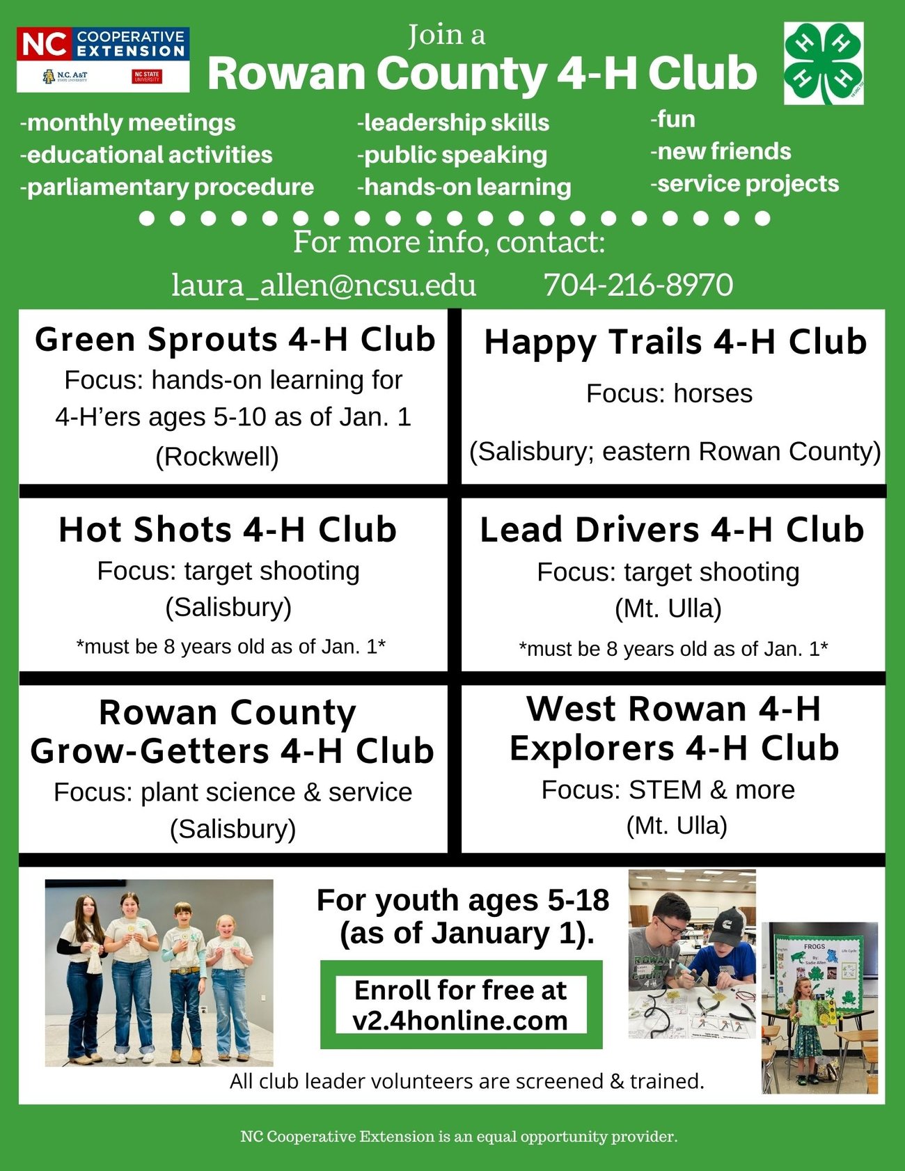 If you are interested in participating in or learning more about ANY of these opportunities, please contact the Rowan County 4-H Agent at laura_allen@ncsu.edu.