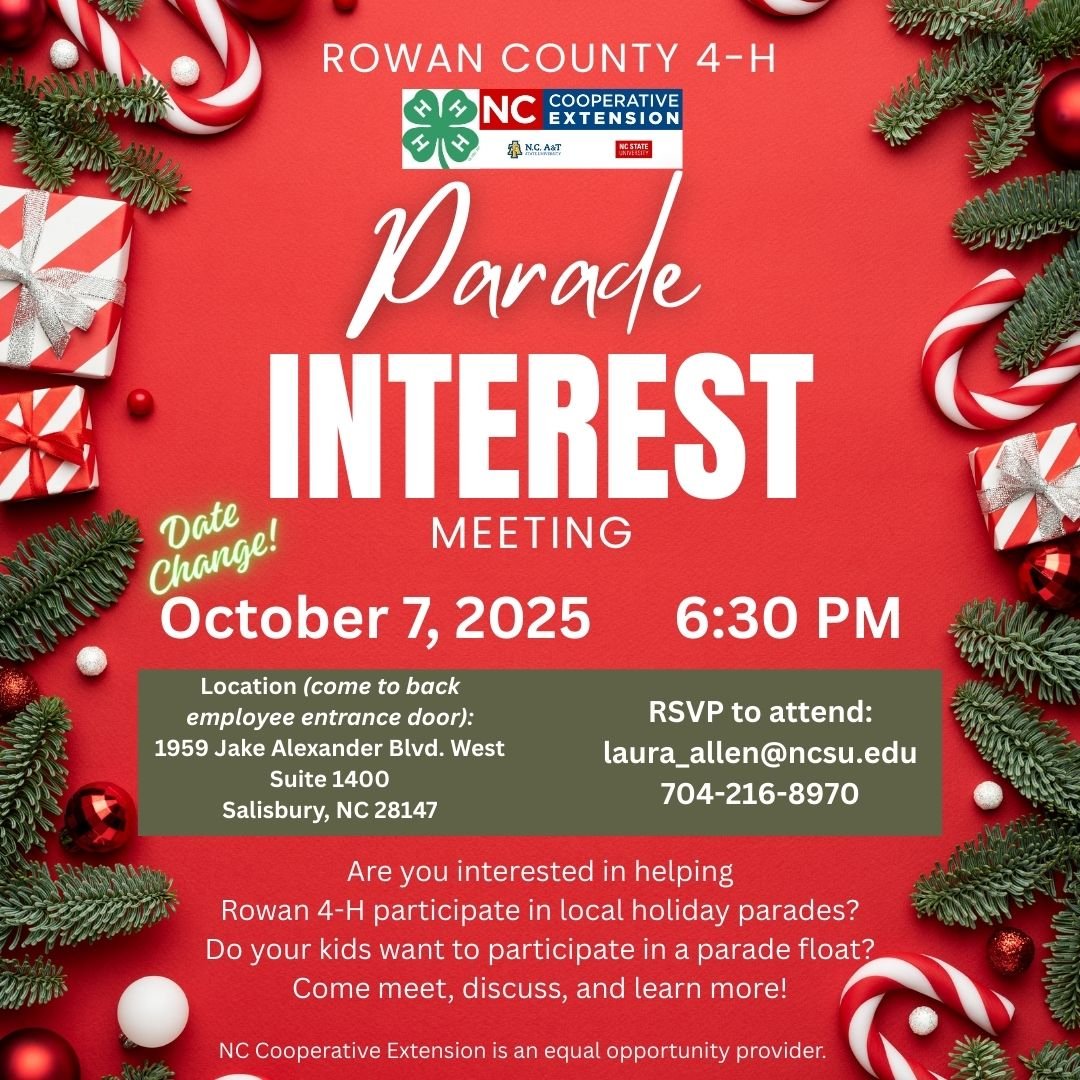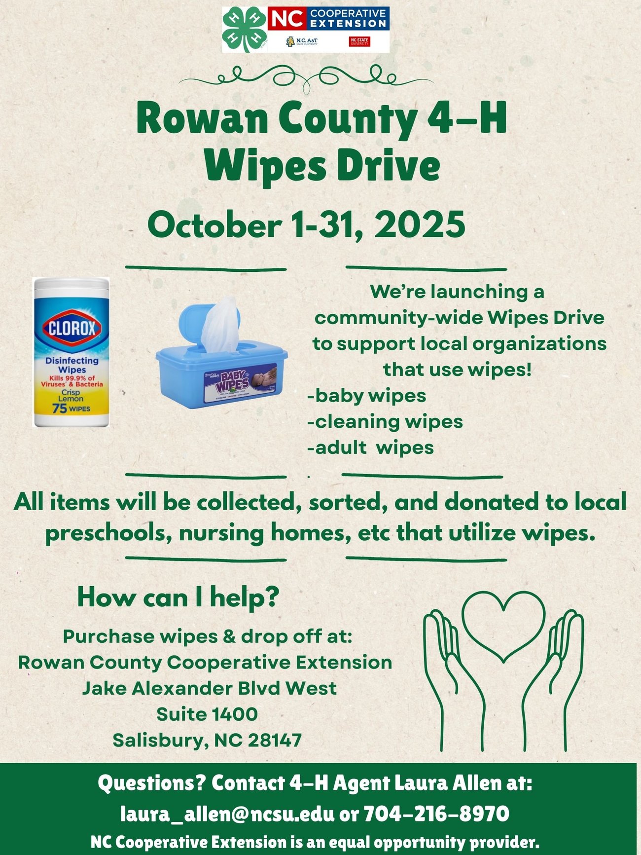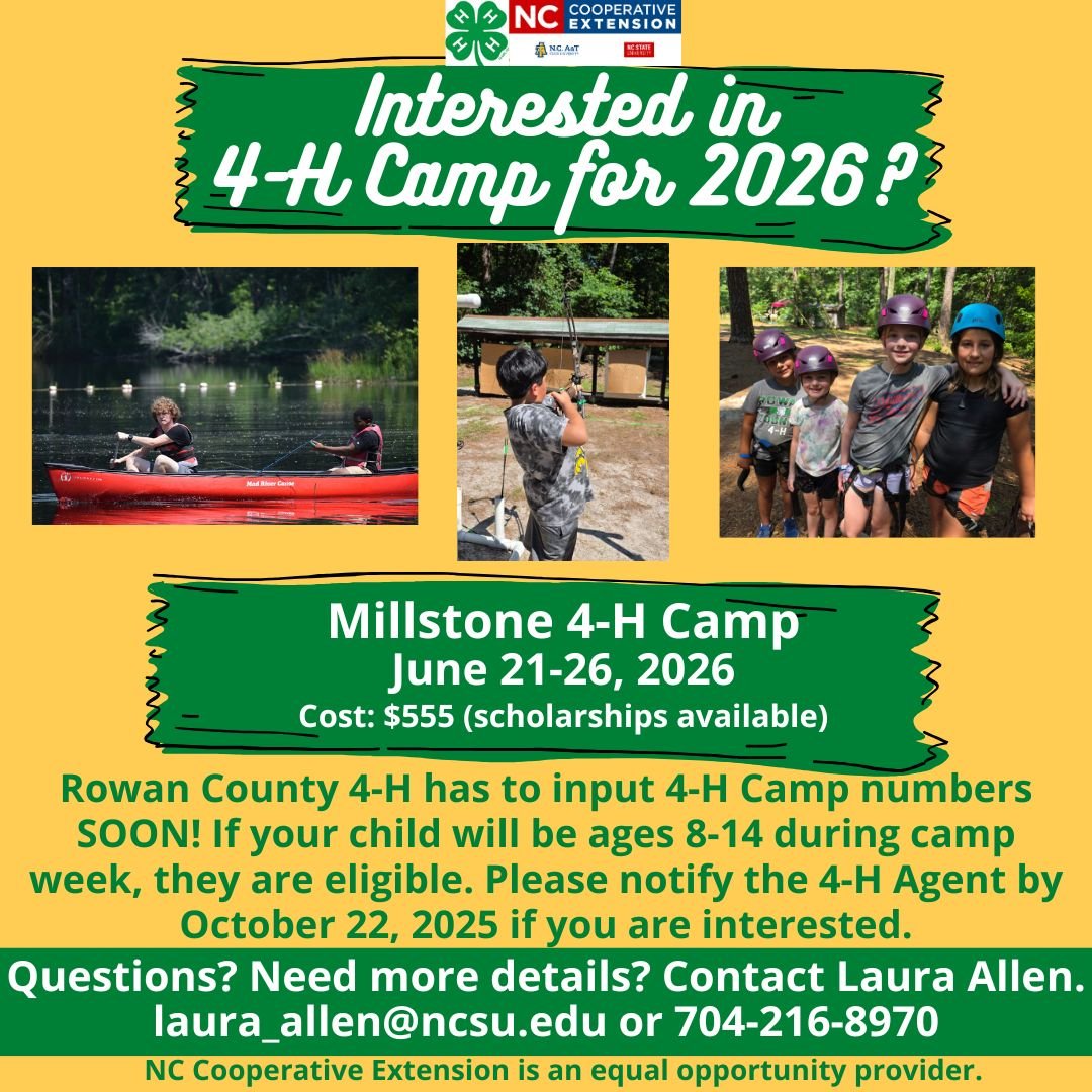 LIVESTOCK: Rowan County 4-H will begin practicing in early 2026 for next years' contests, which are held in in late July/early August. This opportunity is led by 4-H volunteer Eric Deal. Contact Mrs. Laura if interested.