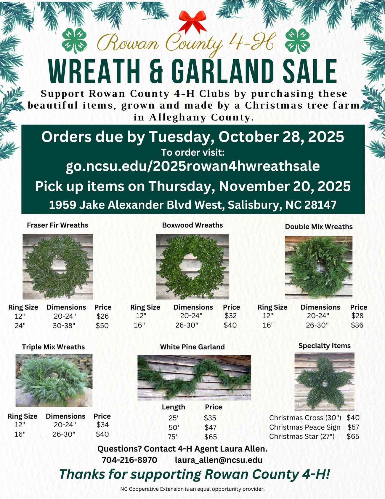 4-H Wreath & Garland Sale orders! ORDERS DUE BY OCTOBER 28.