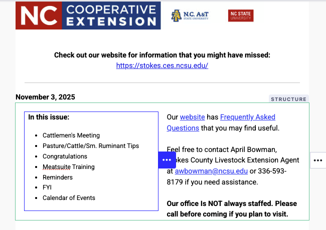 Visit our website for updates and news that you may miss between quarterly newsletters, as well as educational articles at https://stokes.ces.ncsu.edu/. |