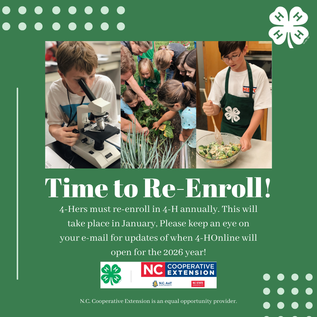 4-Hers must re-enroll in 4-H annually. This will take place in January, Please keep an eye on your e-mail for updates of when 4-HOnline will open for the 2026 year! |