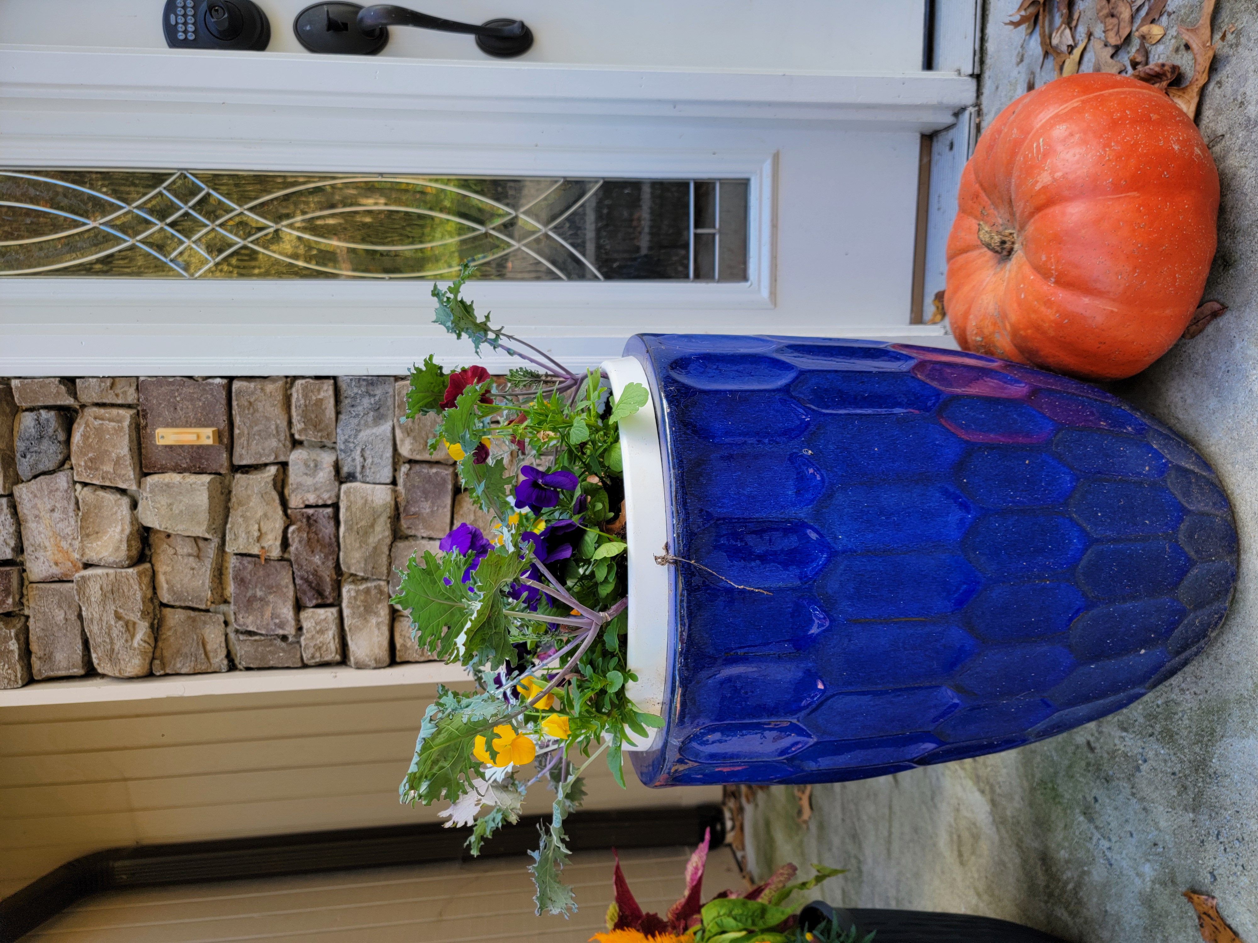 Step 4 - After adding your smallest bulbs and a light layer of soil near the top of your pot, add plants that don't mind the cold to give you some late fall/winter color. This includes pansies, dusty miller, snapdragons, ornamental kales and cabbages, or even pretty twigs