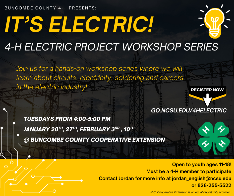 - Tuesday, January 20th 4:00pm - It's Electric 4-H Workshop Series