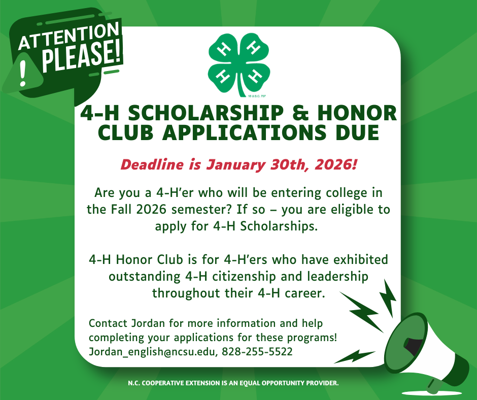 - Monday, February 2nd - 2026 4-H Scholarship Applications Due