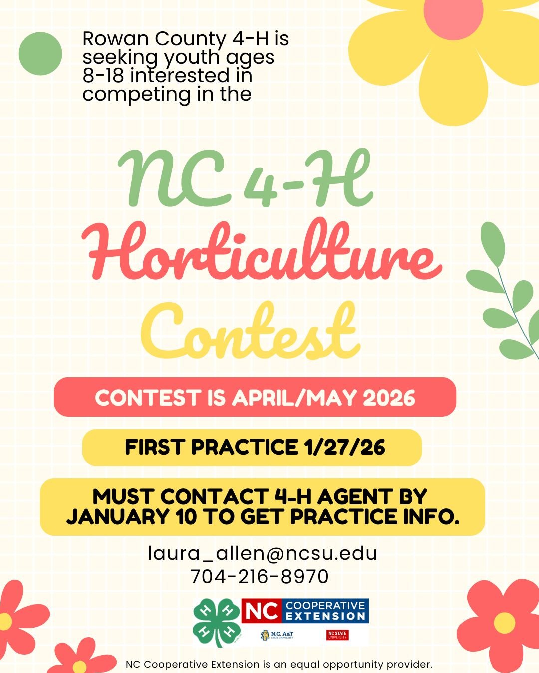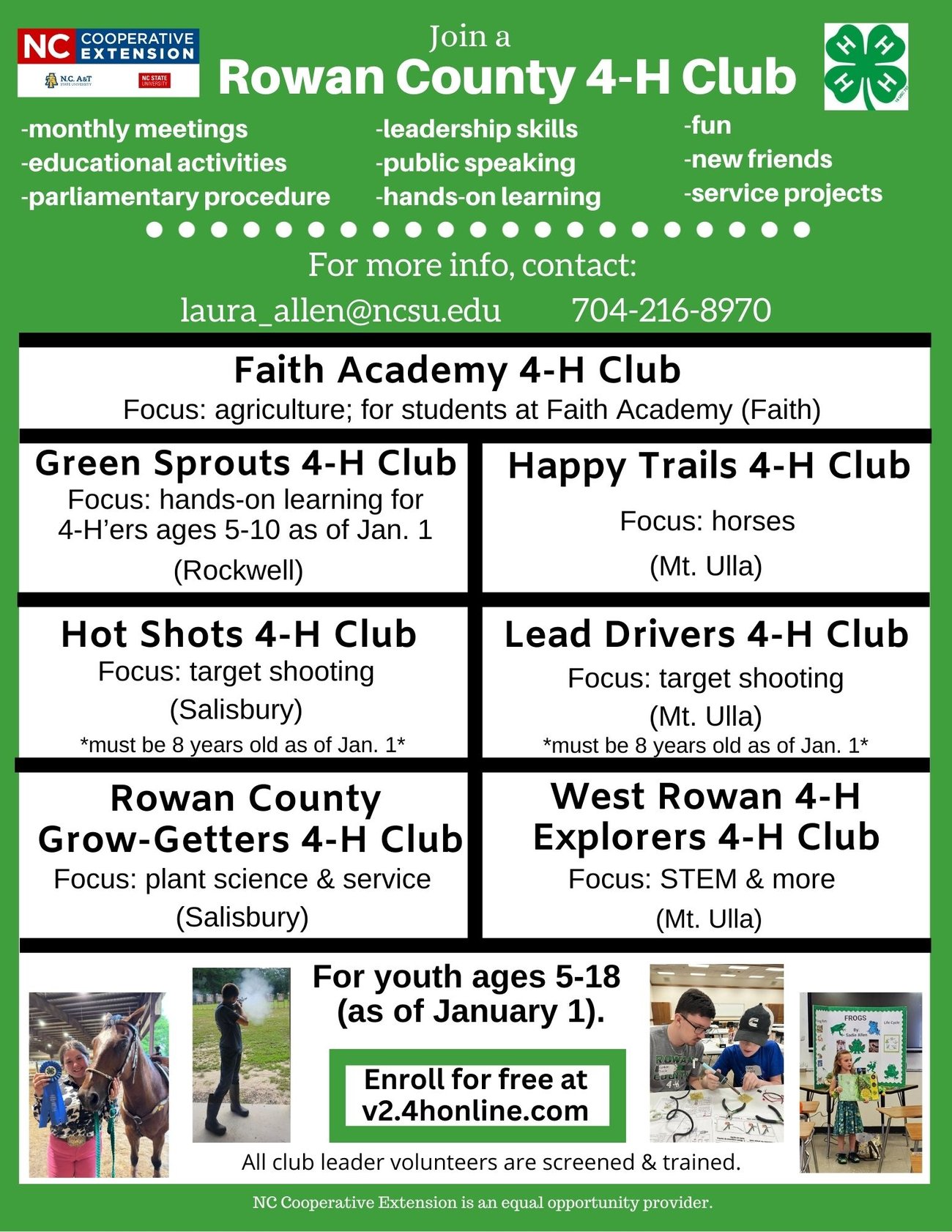 If you are interested in participating in or learning more about ANY of these opportunities, please contact the Rowan County 4-H Agent at laura_allen@ncsu.edu.