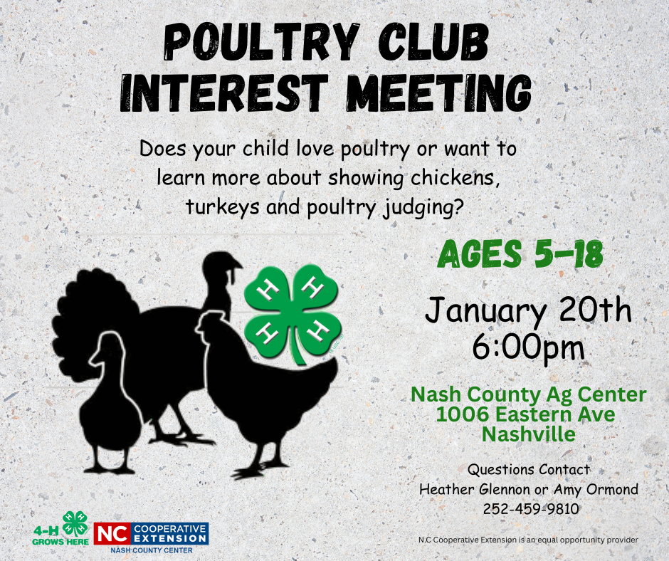 January 20: New 4-H Poultry Club Interest Meeting - Ag Center, Nashville