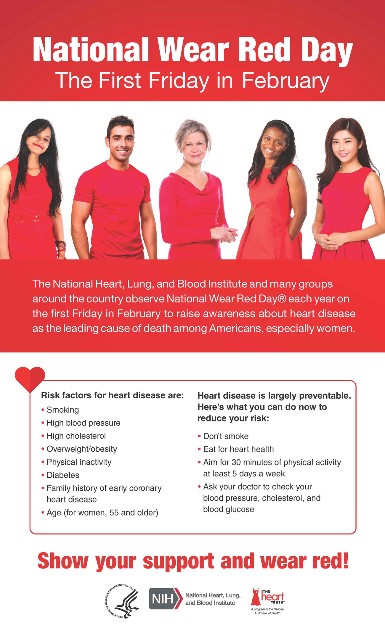 February makes us think of the color red – red hearts for Valentine’s Day and National Wear Red Day. National Wear Red Day is Friday, February 6 and the American Heart Association wants you to wear red to raise awareness about cardiovascular disease. Chances are that you know someone who has been directly affected by heart disease and stroke because cardiovascular disease claims the lives of 1 in 3 women, which is about one woman every 80 seconds. Heart disease is largely preventable. Contact your Extension Office to find out how to improve your heart health this February. |