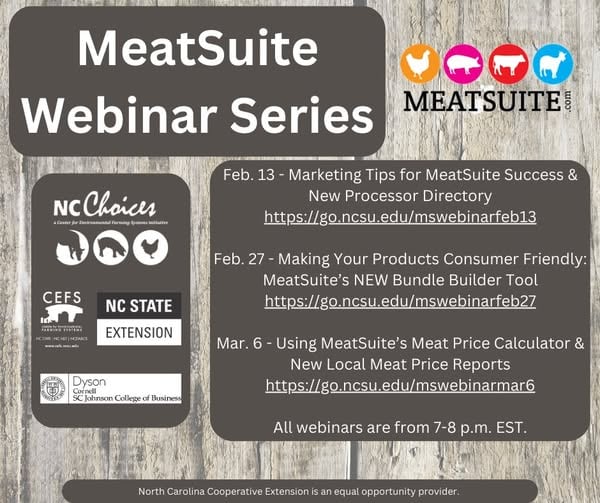 This winter, NC Choices and Cornell University are offering a webinar series to help your farm maximize profitable sales through MeatSuite.com.