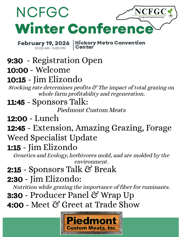 As the backbone of North Carolina’s agricultural outreach, you know that staying ahead of the curve in forage management is essential for supporting our local producers. To help you stay sharp and connected, we are officially inviting you to register for the upcoming North Carolina Forage and Grassland Council (NCFGC) Conference.