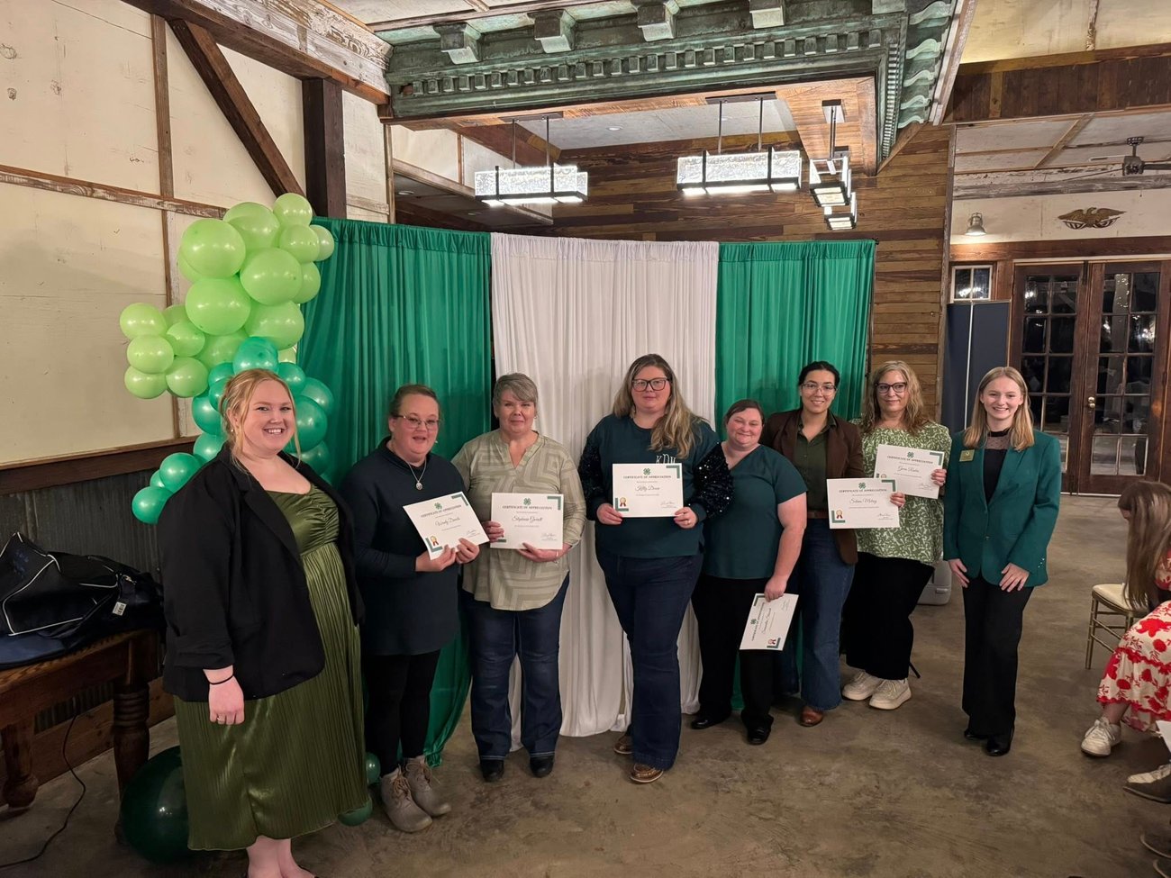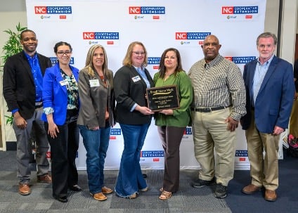 Pictured above: William Landis, CED Selena McKoy, Kim Woods, Wendy Tatum, Madeline Eaton, Elvin Eaton and Johnny Coley at the 2025 Small Farmer of the Year banquet held in March of 2025.