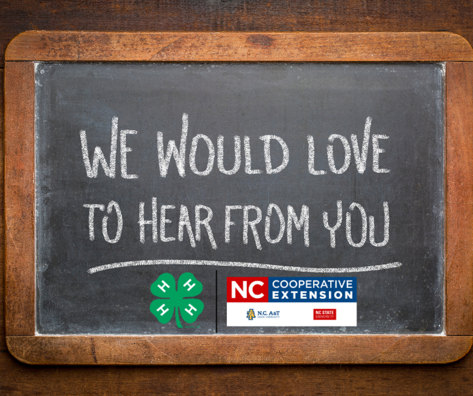 Buncombe County 4-H wants to hear from you! Click the link below to complete our needs assessment. This information will help us plan future programs to best serve Buncombe County youth and families! |