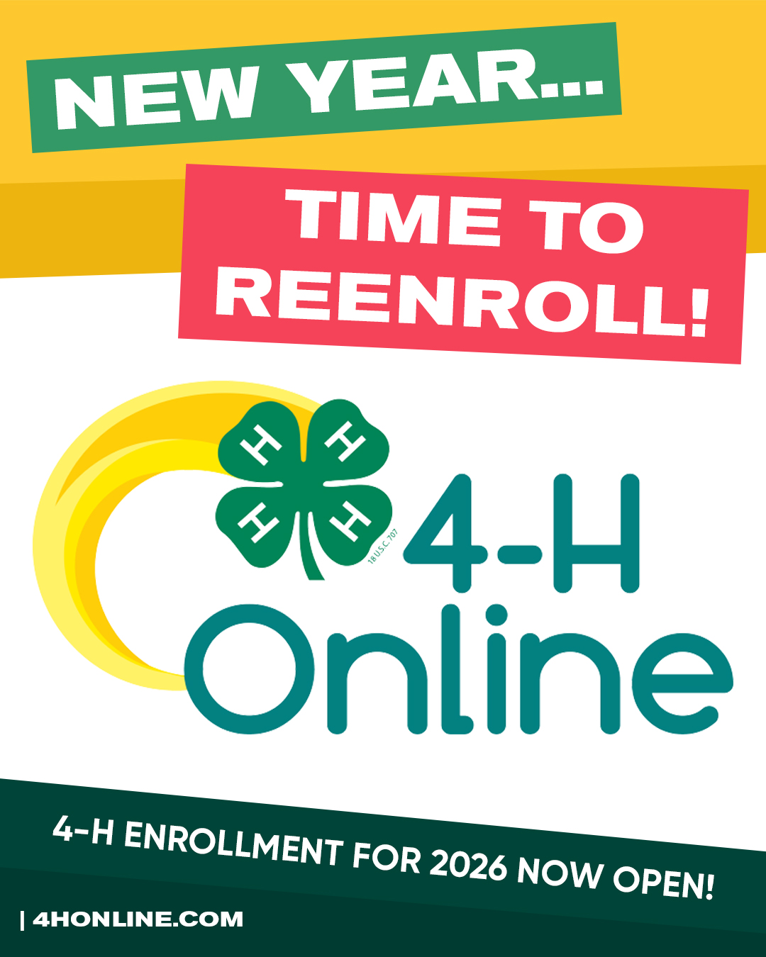 4-H members must re-enroll in 4-H online each year! Re-enrollment is required for participation in ANY 4-H programs. Click the link below to submit your re-enrollment.