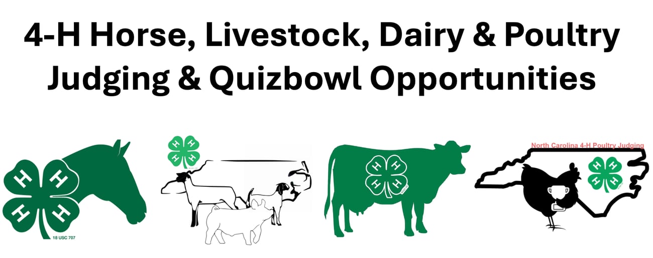 DAIRY CATTLE: The NC 4-H Dairy Quizbowl contest will be held on March 7, 2026 & the NC 4-H Dairy Judging contest will be April 10 If interested in participating in 2026, contact the 4-H Agent. Practices have already begun.