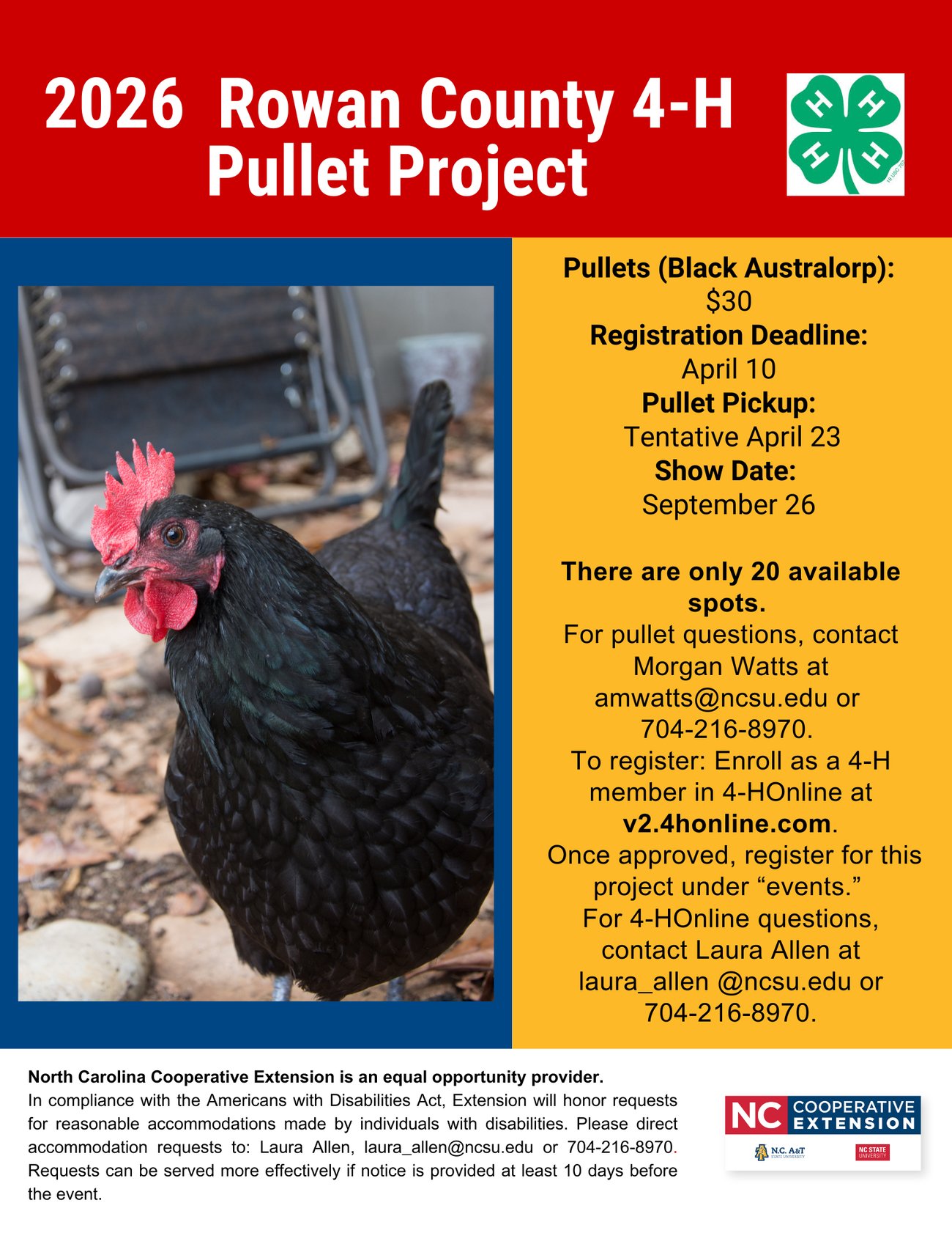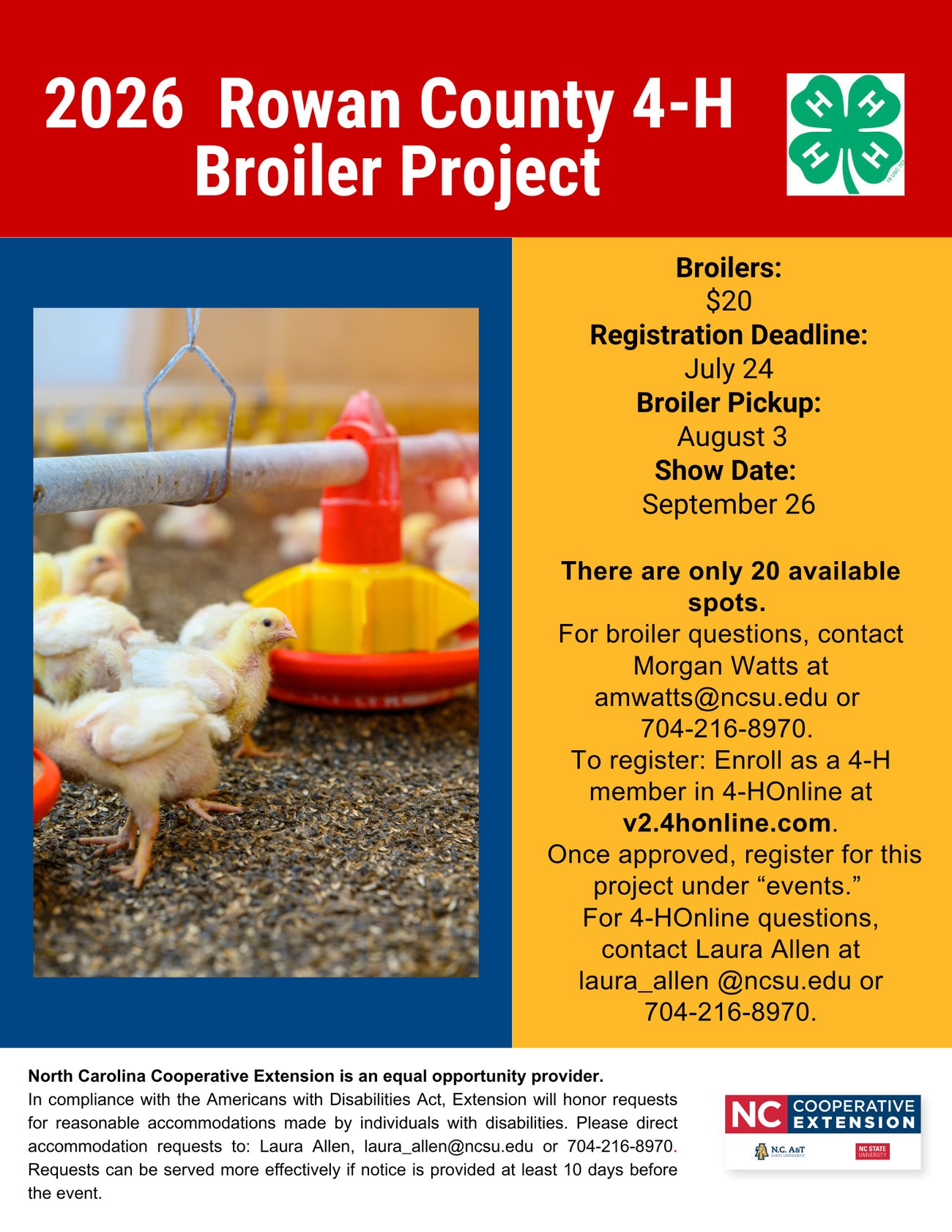 LIVESTOCK: Rowan County 4-H will begin practicing in April for the 2026 NC 4-H Livestock Judging contest, held in in late July/early August. This opportunity is led by 4-H volunteer Eric Deal. Contact Mrs. Laura if interested.