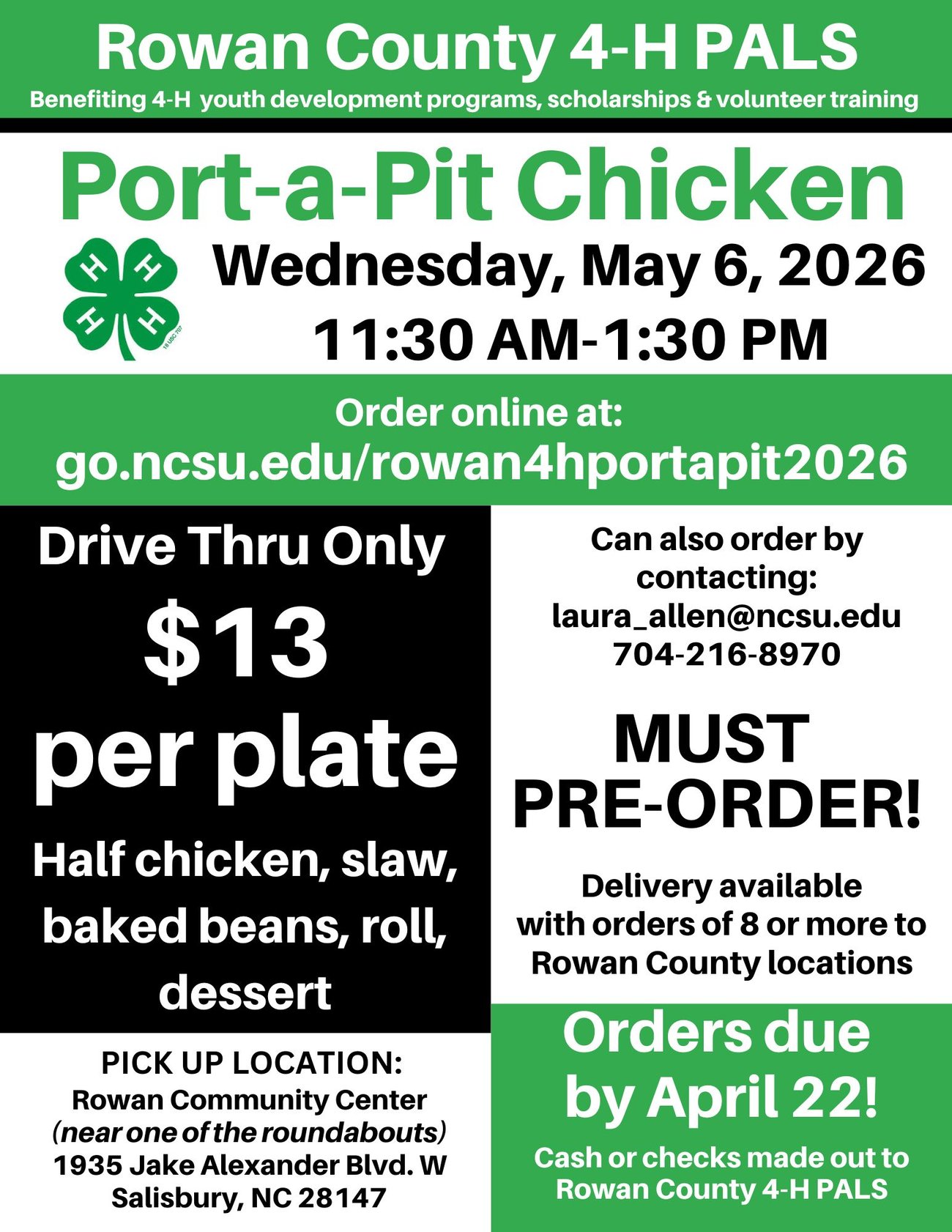 ROWAN COUNTY 4-H PORT-A-PIT FUNDRAISER