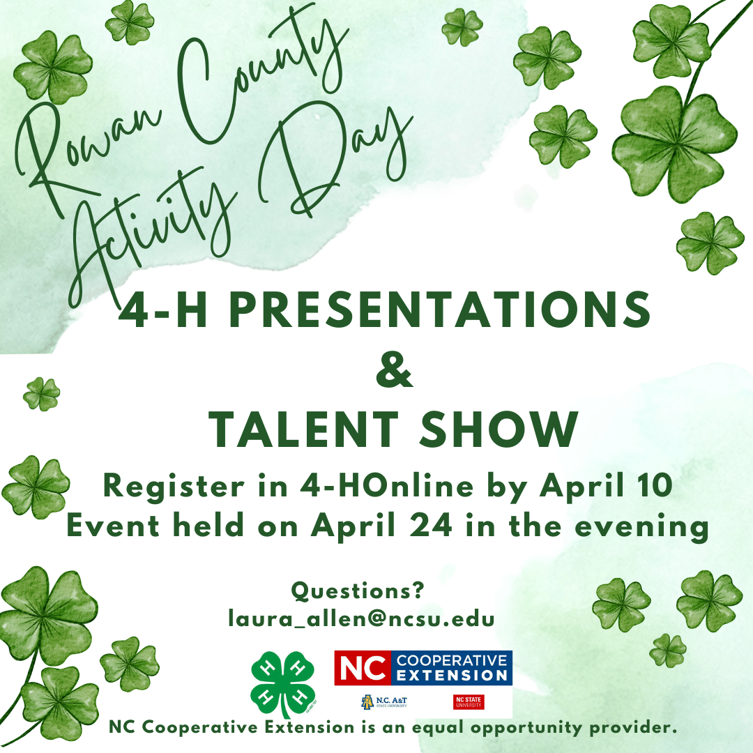 Register now to participate in 4-H Presentations & 4-H Talent Show as part of County Activity Day!