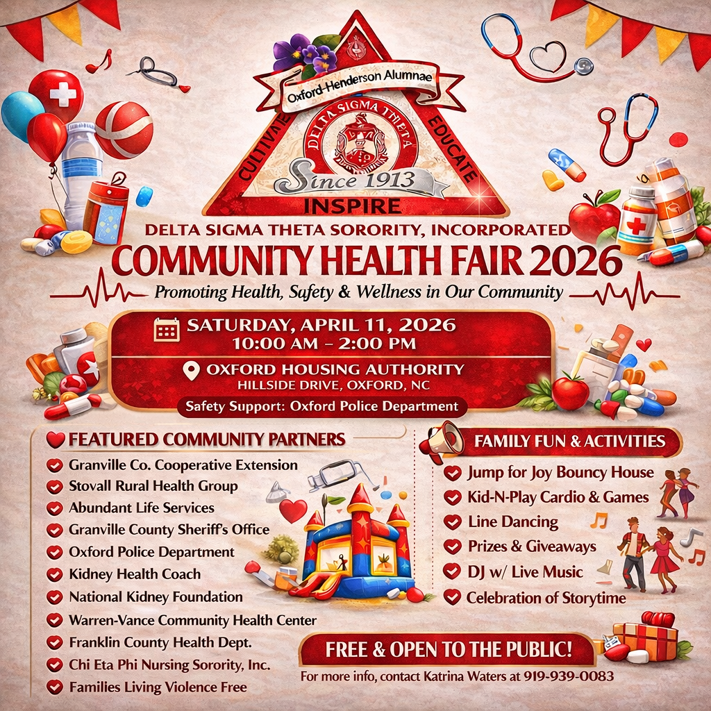 Join the Kappa Delta Sigma Theta sorority at the Oxford Housing Authority for their Community Health Fair. The Health Fair will be held on the grounds and streets