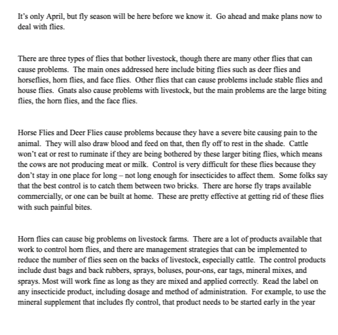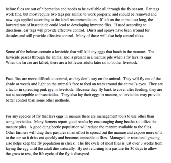 For more specific information on controlling flies on livestock, contact your local NC Cooperative Extension Center.