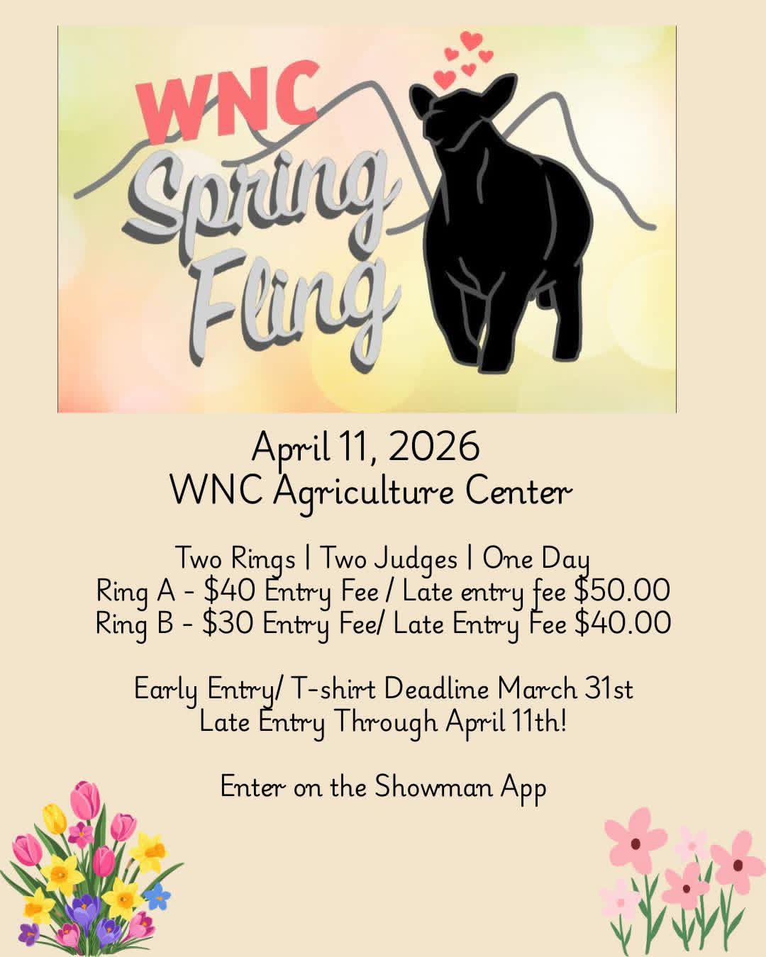 Registrations for the 2026 WNC Spring Fling are now open! This is a great local opportunity for youth to gain beef show experience. Registrations are due by April 11th!