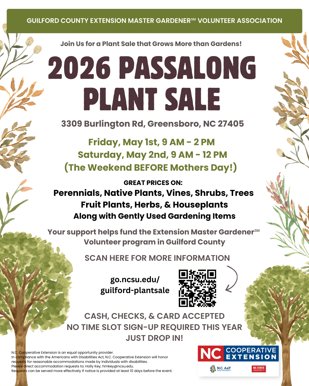Proceeds go towards supporting the activities of the Extension Master Gardenerβ volunteers in Guilford County.