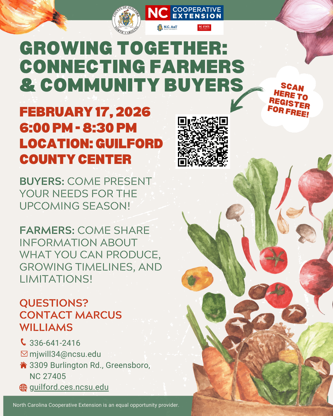 Contact Extension Agent, Marcus Williams at: mjwill34@ncsu.edu, (336) 641-2416 to learn more information.