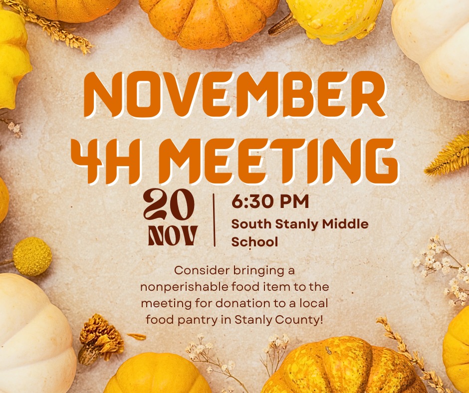 Contact our office or click here to learn more about Stanly 4-H Clubs.