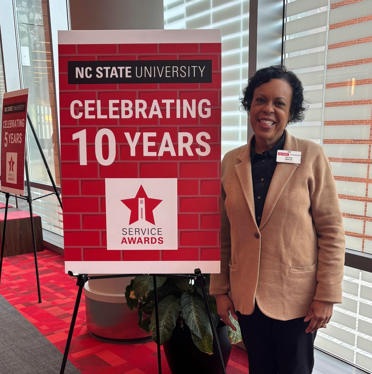 Crystal Mercer, County Extension Agent, Community and School Gardens, celebrates her 10-Year Service Milestone Achievement! 🎉 The Service Awards program honors employees for their years of service and dedicated commitment to the university and the State of North Carolina.