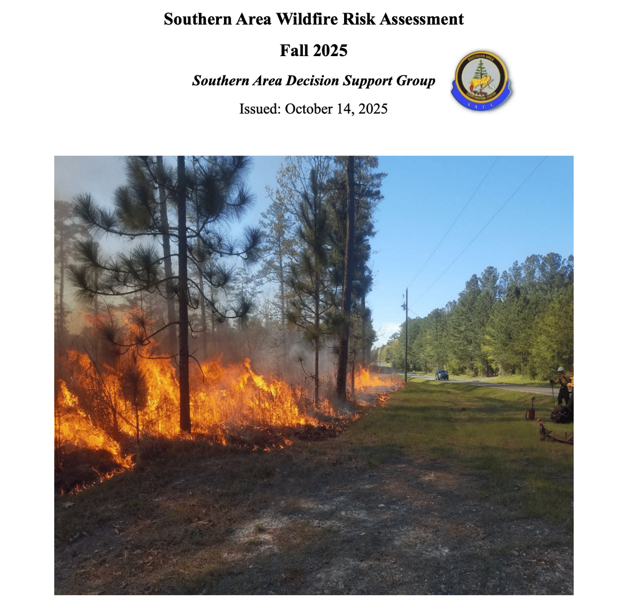 The Southern Area Coordination Center’s “2025 Fall Wildland Fire Risk Assessment” highlights elevated wildfire potential across the Southeast this fall due to warm temperatures, below-average rainfall, and lingering drought conditions. This environment increases urgency for both wildfire prevention and strategic prescribed burning. For prescribed fire practitioners, this means now is the time to ensure burn prescriptions align with changing conditions, review contingency plans, monitor fuel moisture and
